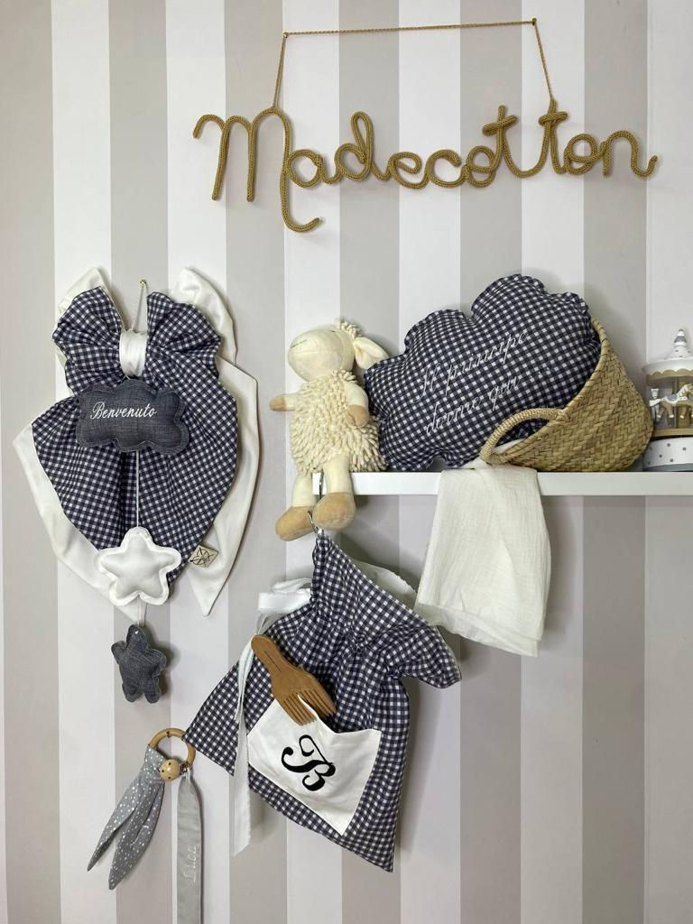 Pratica sacca, ideale per riporre i primi cambi del vostro bambino.La tasca esterna della Sacca Monogram può essere personalizzata con un’altro dei tessuti a scelta. La personalizzazione si completa poi con l’iniziale ricamata del bimbo. E’ possibile inserire un’iniziale in corsivo, oppure due in stampatello.La chiusura della Sacca Monogram è realizzata con nastro di raso di seta.